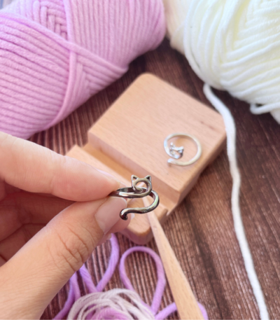 Adjustable Crochet Thread Ring, Opening Finger Yarn Guide, Cute Kitten Knitting Tool, Knitting Loop,Yarn Guides, Sewing Thimble