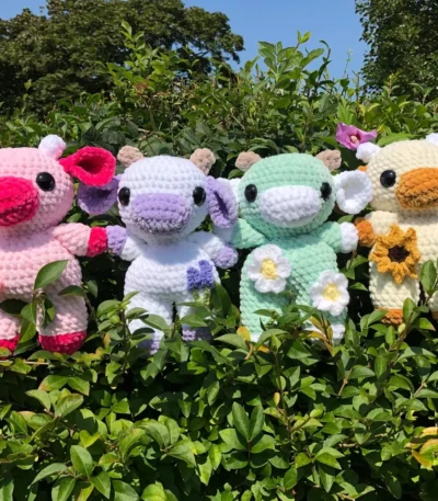 4in1 Flower Cows Crochet Pattern Bundle | Amigurumi PDF | Lavender, Daisy, Cherry Blossom, Sunflower | Low Sew Toy Tutorial