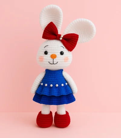 Big Bow Bunny Crochet Pattern | Cute Amigurumi Bunny Pattern | Easy No Sew Crochet Toy | Beginner Friendly Plush Rabbit Design