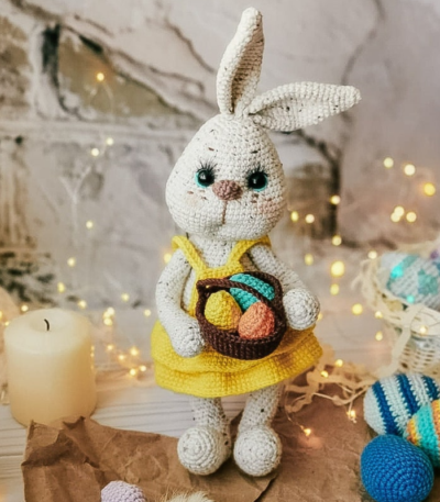 Easter Bunny with Eggs Crochet PATTERN, Amigurumi Bunny Easter Basket, English PDF file, Easter toy pattern