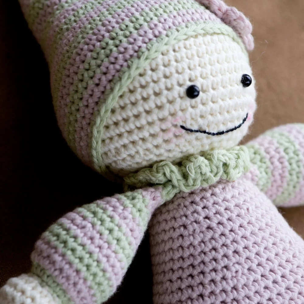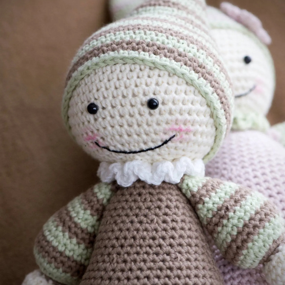 Crochet your little one the cutest baby doll ever, so she can feel the warmness of her mom`s heart every day! Cuddly-baby is inspired by waldorf dolls and is designed to be soft and baby-safe. This doll doesn`t include any tiny details for parents to be worried about. Nothing happens even if the baby puts the toy in its mouths. When giving the Cuddly-baby to your child only for sleeping, it is a good way to teach them to understand when it is time to go to sleep. Also you may show them how to take care of the baby – feeding, cradling, putting to sleep etc.
