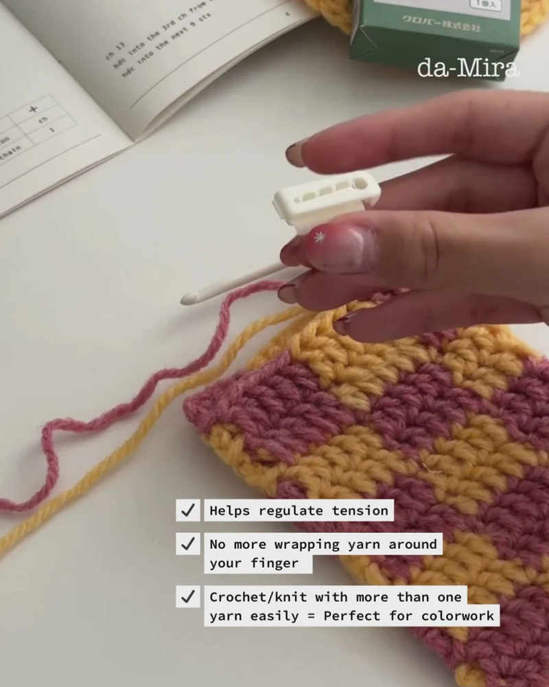 Crocheting & knitting made easy with this Yarn Guide Ring! Say goodbye to the hassle of wrapping your yarn around your finger and get even tension with the help of this handy tool!