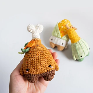 Crochet a festive Thanksgiving feast with our amigurumi food pattern set! This PDF download includes DIY patterns for a gourd, turkey drumstick, corn, and more cute fall decorations. Perfect for your autumn table!