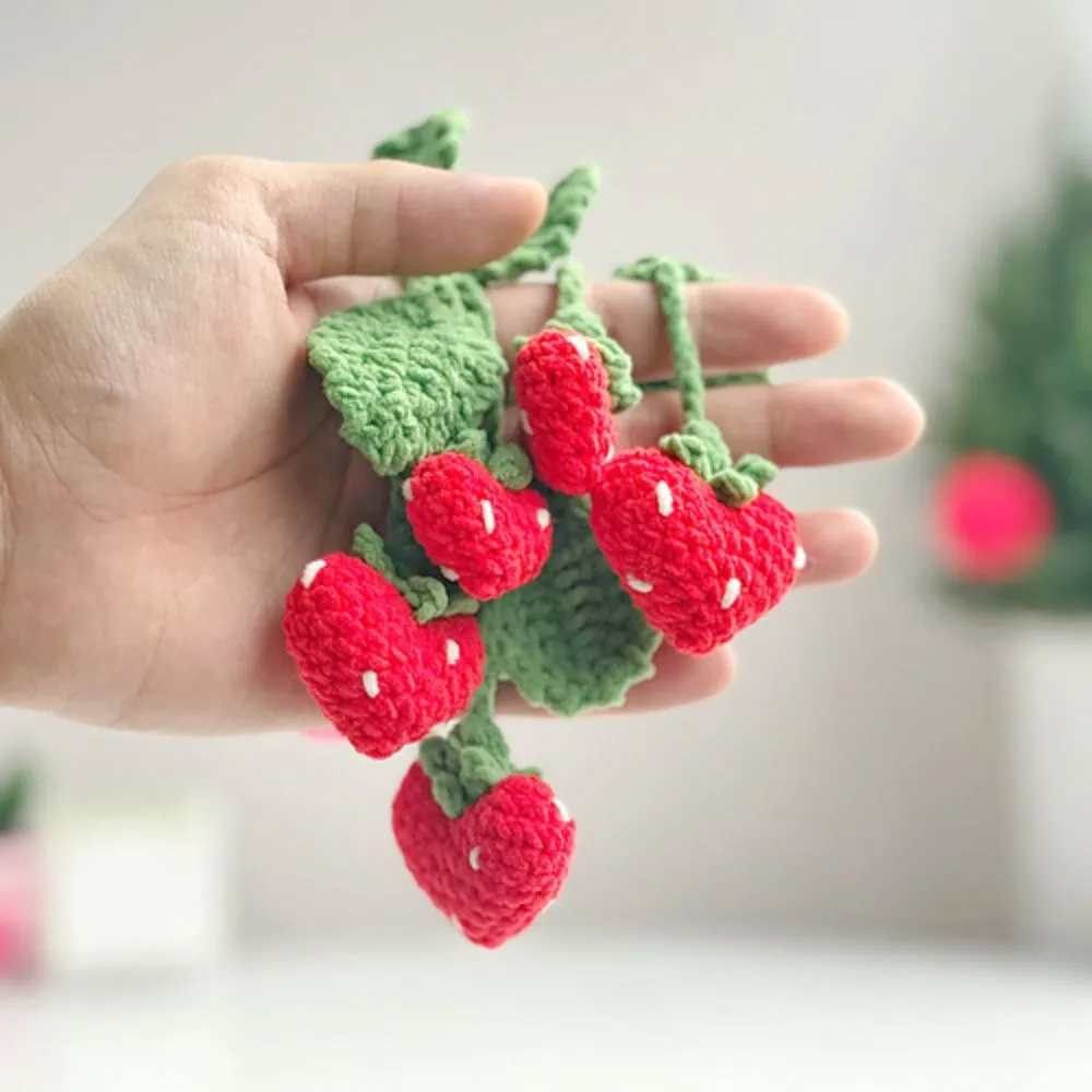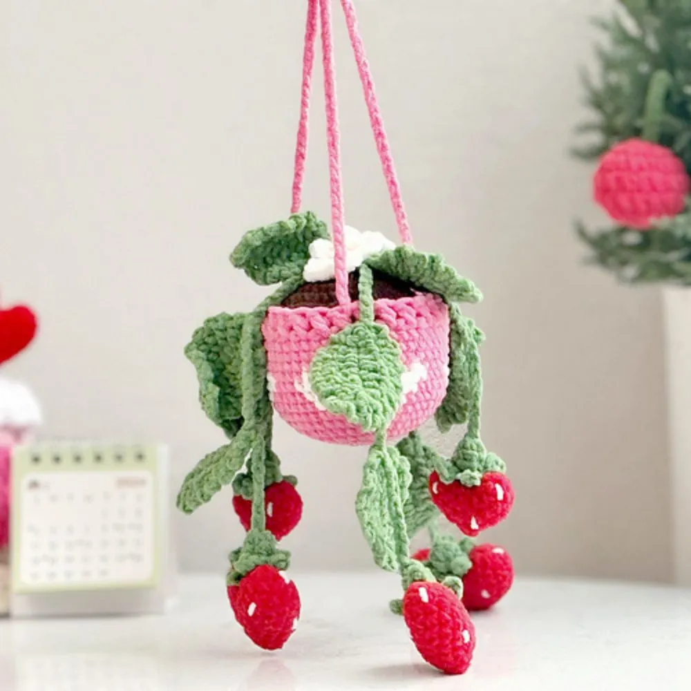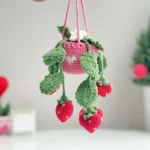 - A charming, handmade crochet strawberry-themed plant hanger.