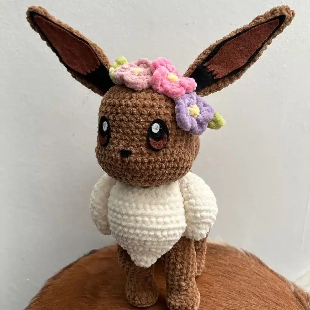 - An adorable, handmade amigurumi Eevee, inspired by the popular Pokémon series.