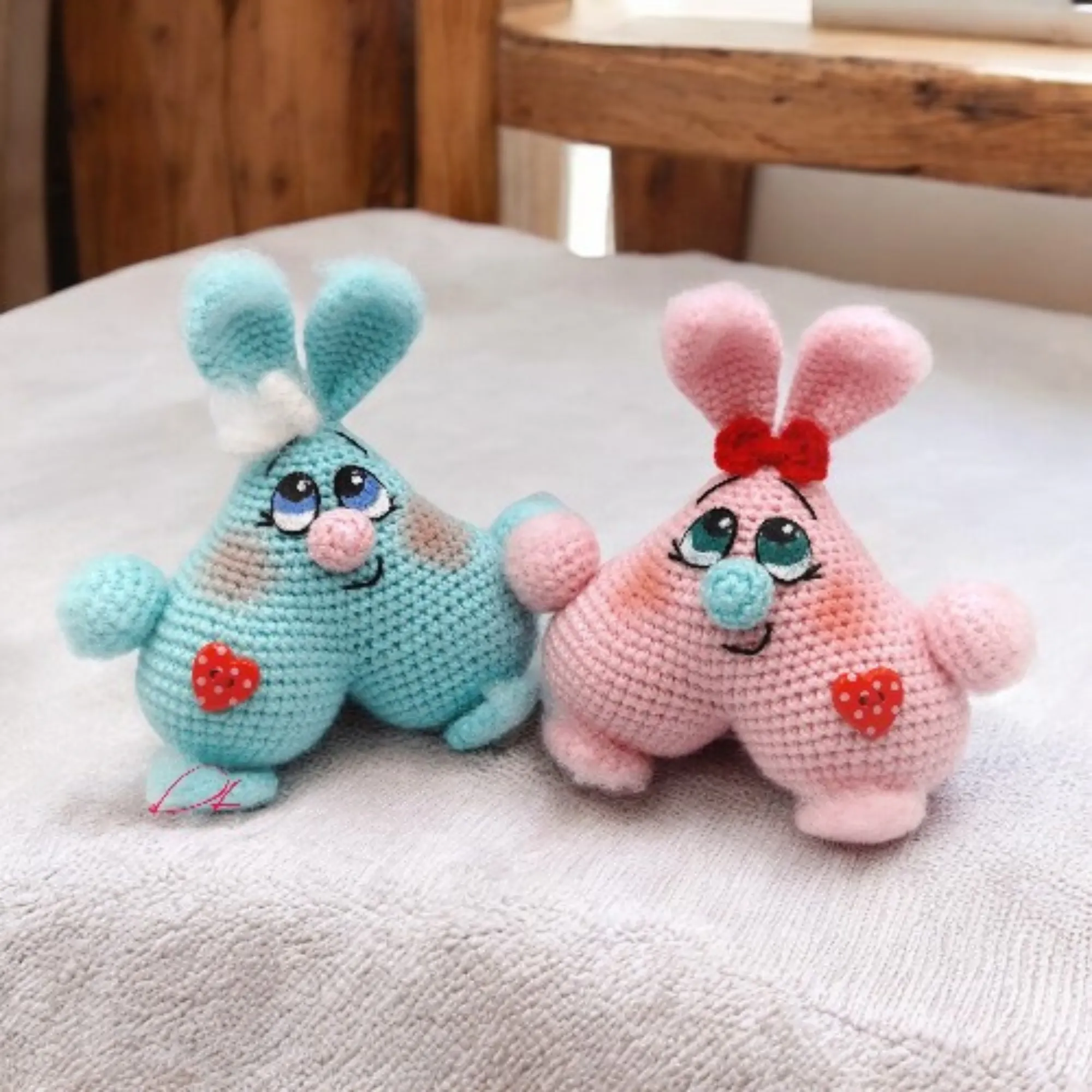 🐰 A pair of amigurumi bunnies in a romantic Valentine’s Day theme