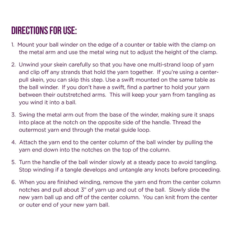 Transform hanks or skeins into compact center-pull balls that sit nicely while you crochet. A clamp secures the ball winder to the table while you wind skeins up to 100 grams or 3.5 ounces. Best when used in tandem with a Yarn Swift.
